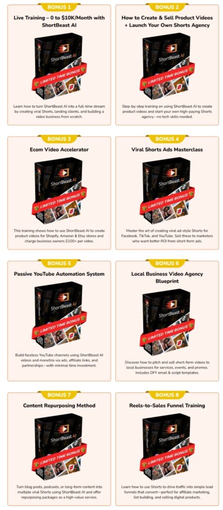These OTOs cater to different needs, from solo creators to agencies looking to scale. Pick the ones that align with your goals to get the most out of ShortBeast AI.